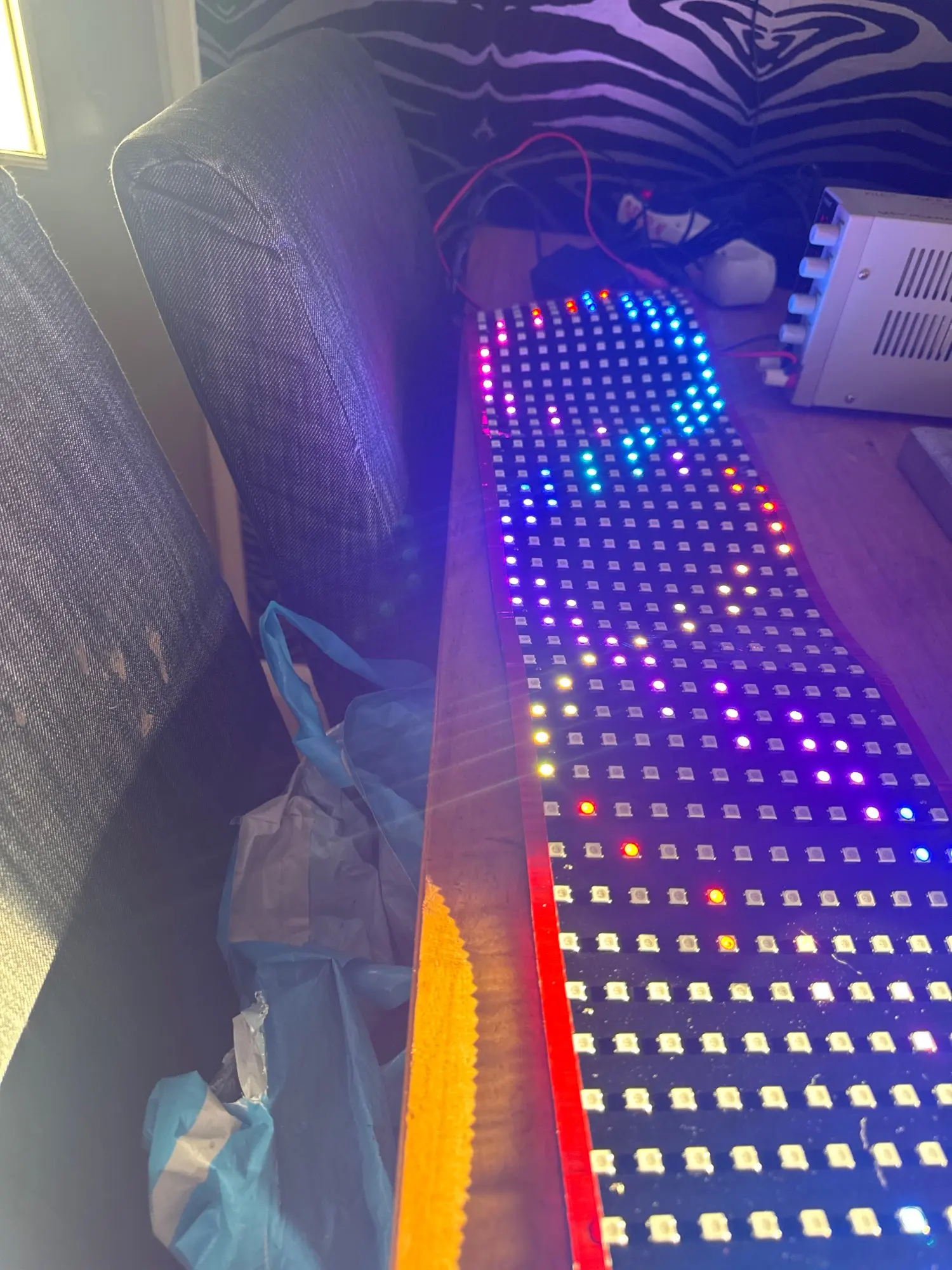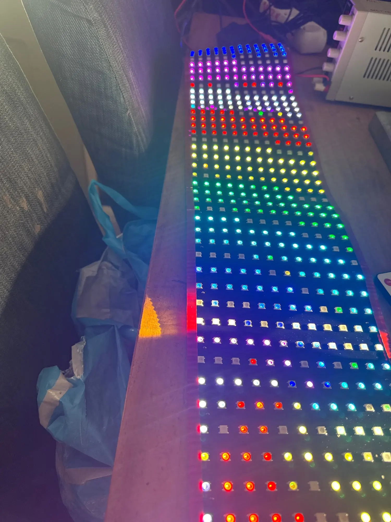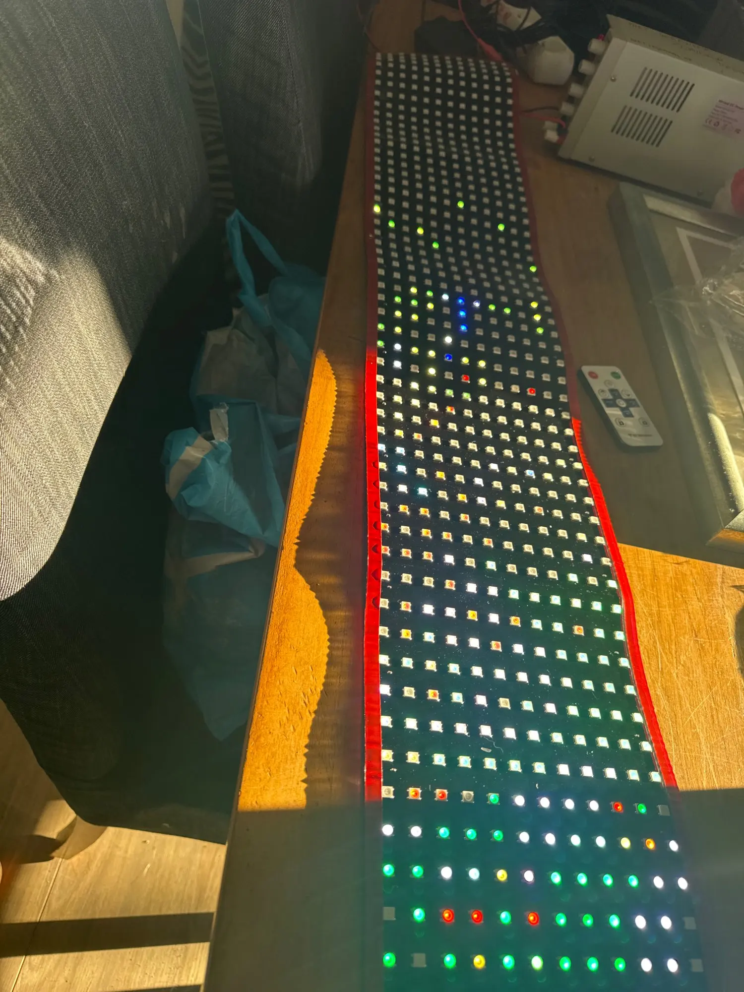 LED Matrix Panel kit with packaging, cable, remote control, and ribbon on a white background.